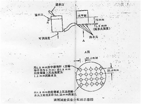 箱式淋雨試驗(yàn)箱的排列應(yīng)能使試驗(yàn)樣品所有向上的表面在試驗(yàn)期間同時(shí)經(jīng)受到水滴。 |